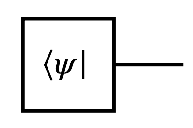 Tensor network diagram에서 텐서는 도형으로 표현되고, 텐서의 각 차원은 도형에서 뻗어나오는 선으로 표현됩니다. 위 그림에서는 ket $\vert \psi \rangle$가 1차원 텐서이므로 왼쪽에서 하나의 선이 뻗어나오고 있습니다. 이제 bra를 살펴봅시다.