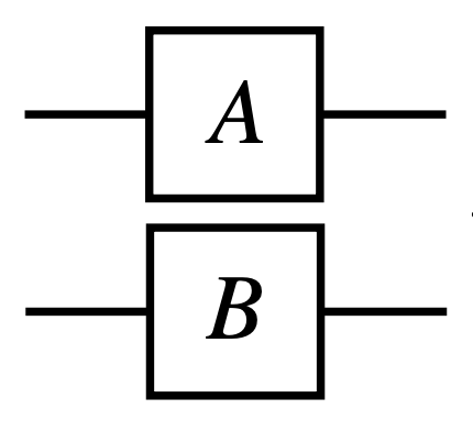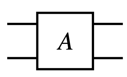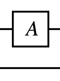 tensor product $A \otimes B$ 은 두 subsystem 에 각각 적용되는 연산입니다. 따라서 입력 선이 두 개, 출력 선이 두 개인 도형으로 표현됩니다. 이 직관을 사용해서 $A \in L(\mathbb{C}^d \otimes \mathbb{C}^d)$ 을 표현해 봅시다. 입력이 두개, 출력이 두 개인 한 개의 도형일 것입니다.