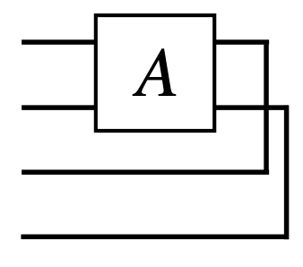 $Tr_2$ 이므로 두 번째 subsystem의 입력 선과 출력 선이 연결되어 닫힌 루프를 형성하고 있습니다. 그림 3-1에서 살펴본 trace 연산의 표기법과 동일합니다. 만약 $Tr_1(A)$ 였다면 첫 번째 subsystem의 입력 선과 출력 선이 연결되었을 것입니다.