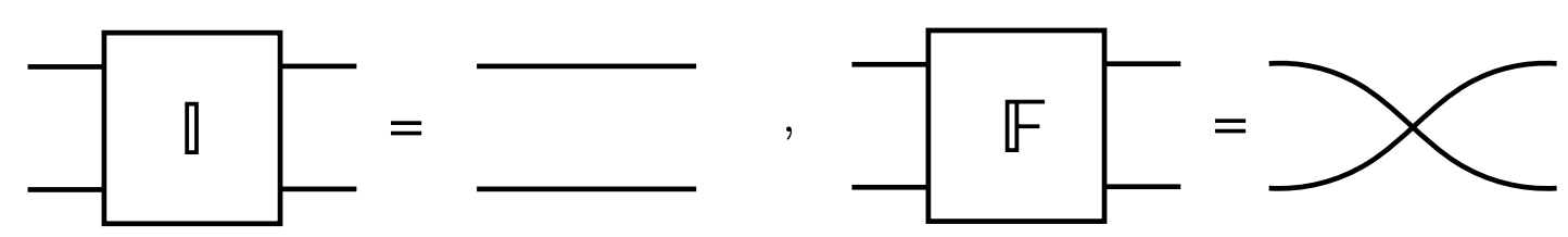 \[\mathbb{F} \vert \psi \rangle \otimes \vert \phi \rangle = \vert \phi \rangle \otimes \vert \psi \rangle\]이를 tensor network diagram 으로 표현하면 다음과 같습니다.